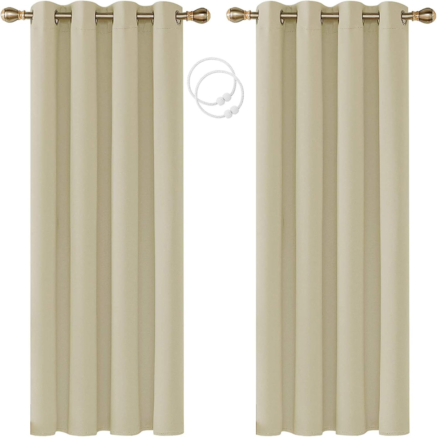 - Set Of 2 Curtains Eyelet Curtain Set With Tie Backs 74 X 46 Cm Opaque Window Curtain Blackout Curtain For Living Room Bedroom Kitchen Beige Keliti